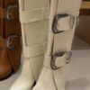 • Tacón de vaqueta natural, alto 8 cm
