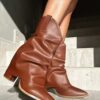 - Tacón de vaqueta natural, alto 6 cm